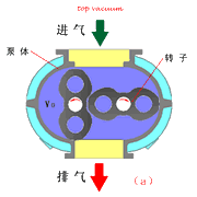 羅茨泵的結(jié)構(gòu)如圖所示。在泵腔內(nèi),有二個“8”字形的轉(zhuǎn)子相互垂直地安裝在一對平行軸上,由傳動比為1的一對齒輪帶動.