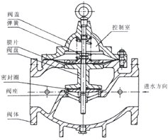 水力控制閥是以管道介質(zhì)壓力為動力,進(jìn)行啟閉、調(diào)節(jié)的閥門。它由一個主閥和附設(shè)的導(dǎo)管、針閥、球閥和壓力表等組成、根據(jù)使用的目的、功能場所的不同,可演變成遙控浮球閥、減壓閥、緩閉止回閥、流量控制閥、泄壓閥、水力電動控制閥、緊急關(guān)閉閥等。 導(dǎo)閥隨介質(zhì)的液位和壓力的變化而動作,由于導(dǎo)閥種類很多,可以單獨(dú)使用或幾個組合使用,就可以使主閥獲得對水位和水壓及流量等進(jìn)行單獨(dú)和復(fù)合調(diào)節(jié)的功能。但主閥閥體類似截止閥,閥門全開時,其壓力損失比其他閥門要大得多,且各個開度損失系數(shù)越是與全閉狀態(tài)接近,越是劇增,閥門口徑越大就越顯著。具有上述特性的閥門,在接近閥瓣的動作加速,易發(fā)生水錘的沖擊,接近全閉時,閥門動作越緩慢越好,于是可在閥瓣上設(shè)置節(jié)流裝置。另外先導(dǎo)閥的節(jié)流和動作部分要盡量避免設(shè)置特小口徑的孔口,以免堵塞。必要時要加過濾網(wǎng),定期檢修及設(shè)置旁通管路。水力控制閥分隔膜型和活塞型兩類,工作原理相同,都是以上下游壓力差為動力,有導(dǎo)閥控制,使隔膜(活塞)液壓式差動操作,完全由水力自動調(diào)節(jié),從而使主閥閥瓣完全開啟或完全關(guān)閉或處于調(diào)節(jié)狀態(tài)。當(dāng)進(jìn)入隔膜(活塞)上方控制室內(nèi)的壓力水被排到大氣或下游低壓區(qū)時,作用在閥瓣低部和隔膜下方的壓力值就大于上方的壓力值,從而將主閥閥瓣推到完全開啟的位置:當(dāng)進(jìn)入隔膜(活塞)上方控制室內(nèi)的壓力值處于入口壓力與出口以來中間時,主閥閥瓣就處于調(diào)節(jié)狀態(tài),其調(diào)節(jié)位置取決于導(dǎo)管系統(tǒng)中的針閥和導(dǎo)閥的聯(lián)合控制作用。導(dǎo)閥可以通過下游壓力的變化而開大或關(guān)小其自身的小閥口,從而改變隔膜(活塞)上方控制室的壓力值,控制主閥閥瓣的調(diào)節(jié)位置??捎糜谏罱o水、消防系統(tǒng)及工業(yè)給水系統(tǒng)。